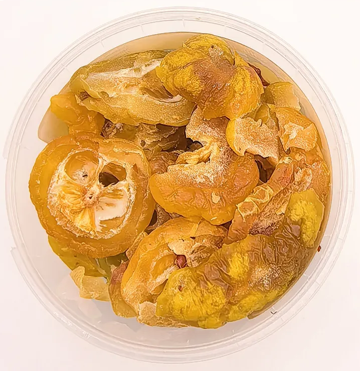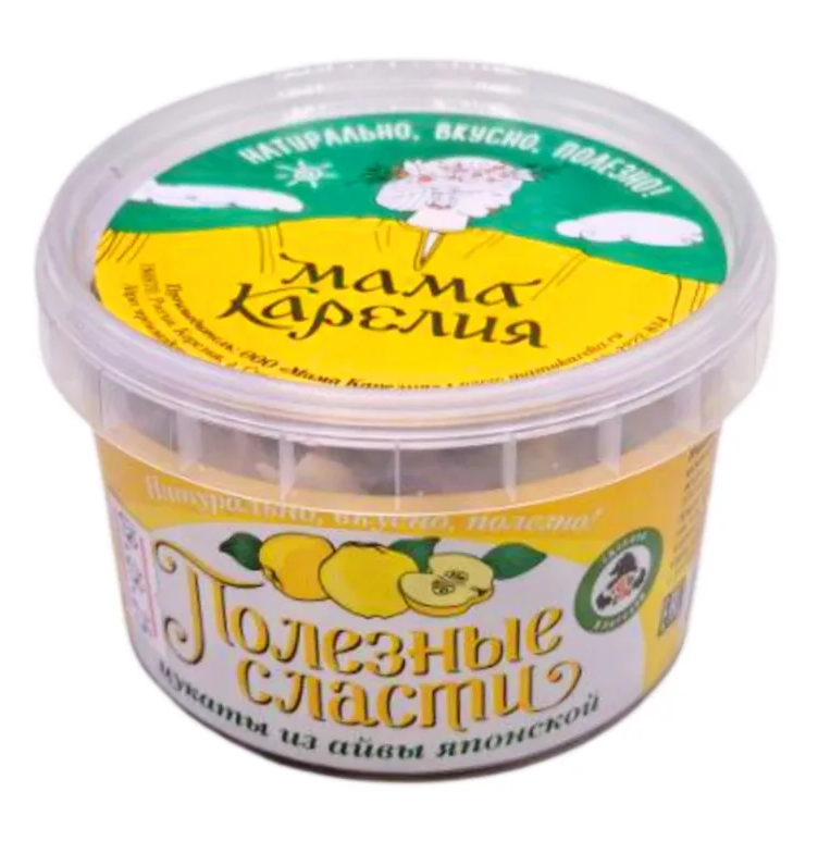 Дольки высушенной и вываренной в сиропе спелой айвочки японской (цидонии). Вкус ни на что не похож, даже сравнивать не будем) Кисло-сладкий, немного терпкий - нам очень нравится! Пластиковый стакан с крышкой, 115 г.